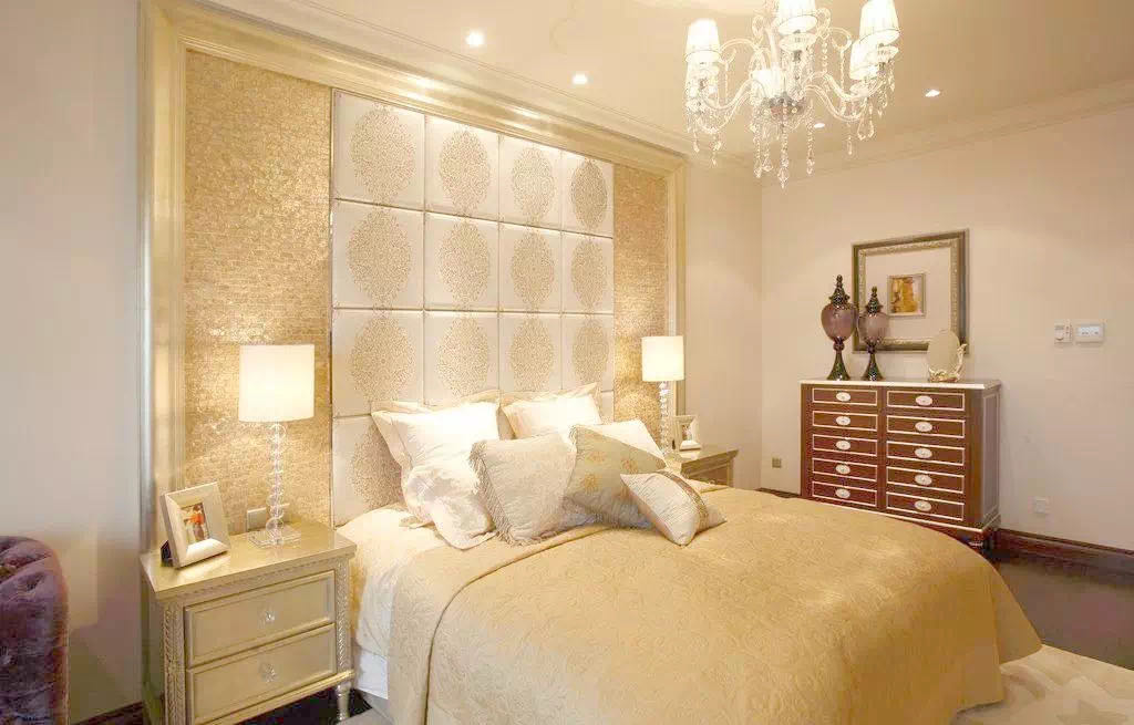 3.臥室的主體照明可以選擇乳白色的白熾吊燈,安裝在臥室的中央,此外還可以在床頭距離地面約1.8米的墻壁上安裝壁燈。