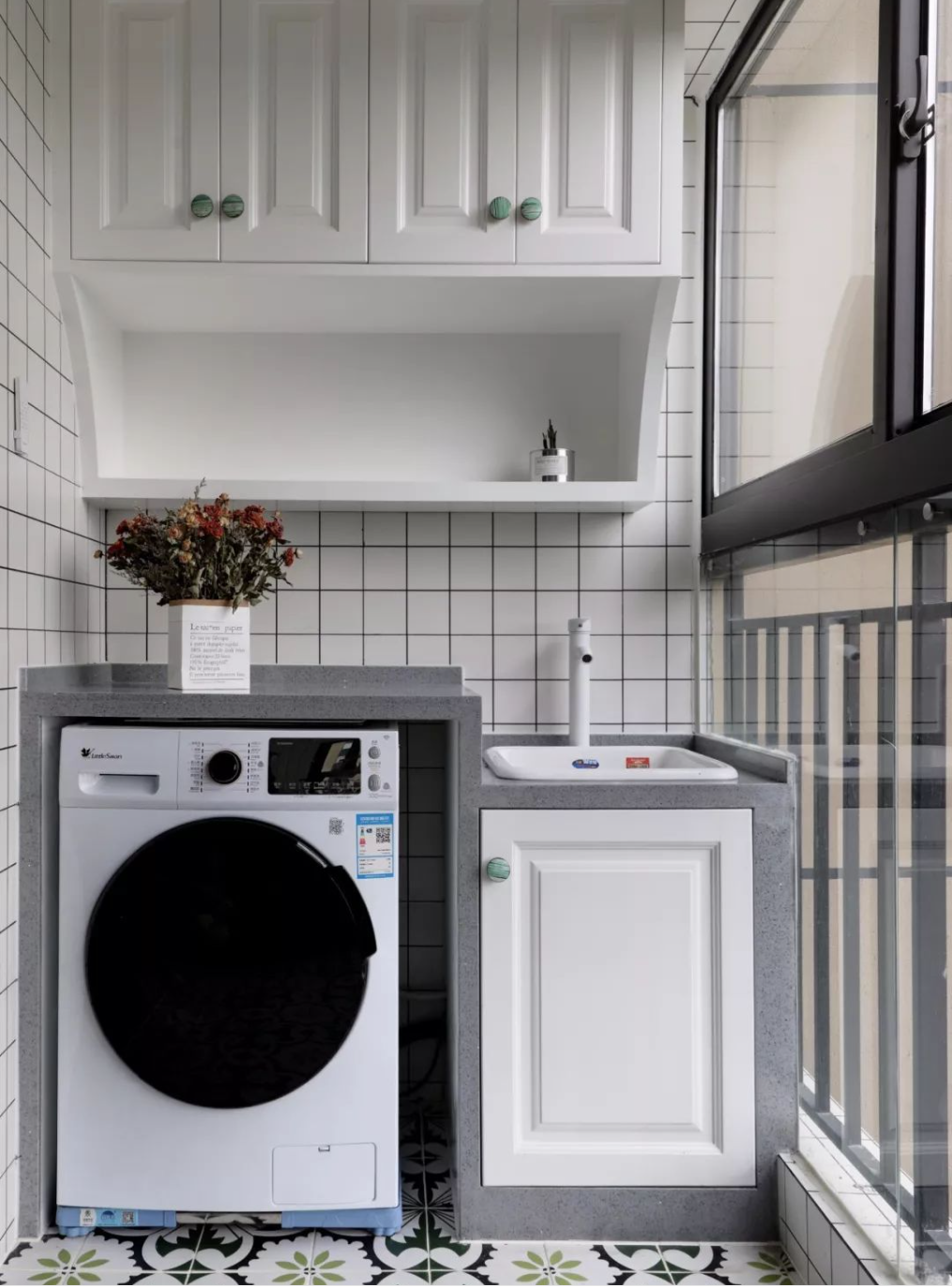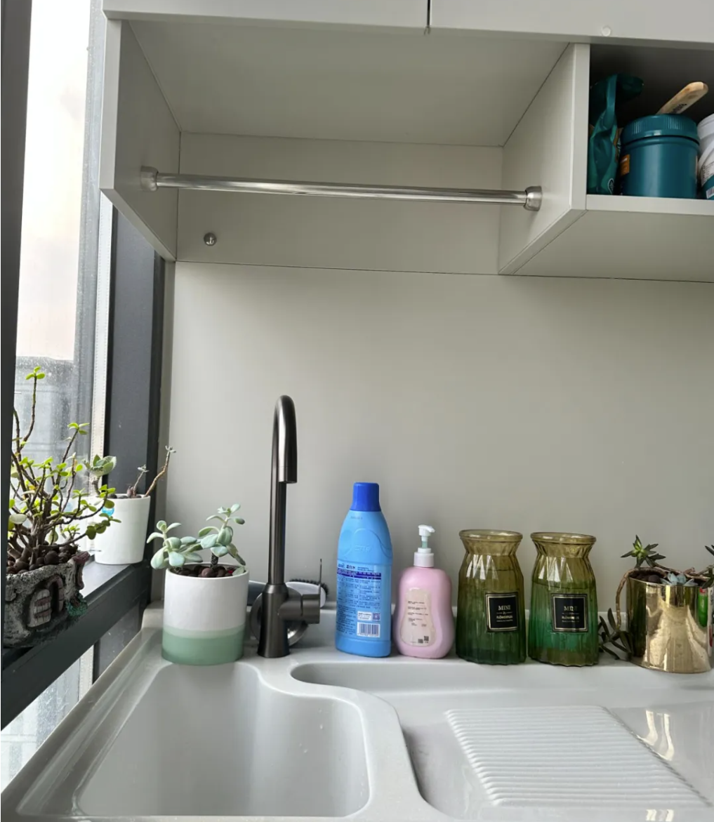 增強(qiáng)家居整潔度:洗衣池與吊柜的結(jié)合,不僅為洗滌用品提供了專屬的收納空間,還使得陽臺(tái)區(qū)域更加整潔有序。減少了洗滌用品散落各處的雜亂感,提升了家居的整體美觀度。