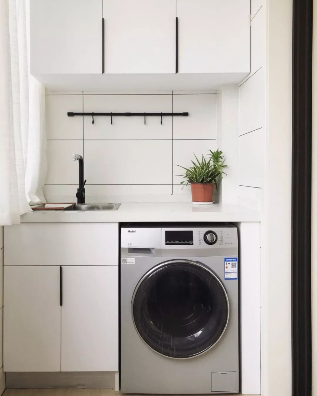 精準(zhǔn)測量與規(guī)劃:在裝修初期,務(wù)必對陽臺(tái)空間進(jìn)行精準(zhǔn)測量,并提前規(guī)劃好洗衣機(jī)、洗衣池及吊柜的位置和尺寸。確保所有元素都能和諧共存,既不互相干擾,又能充分利用空間。