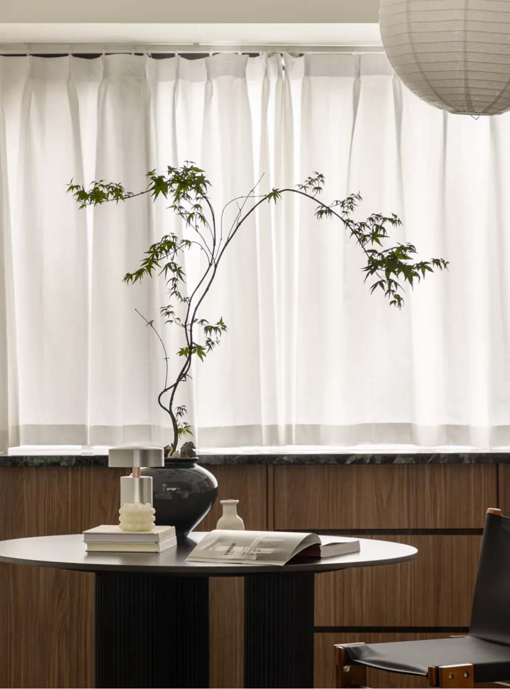 考慮到書房和茶室的空間限制,生長速度慢的小型盆栽,最為合適。