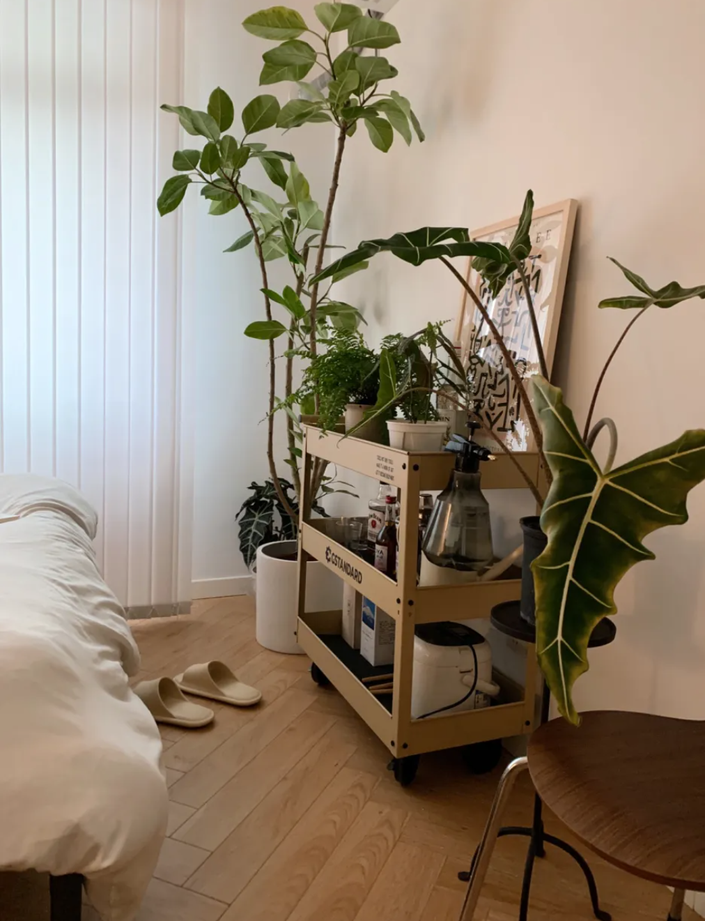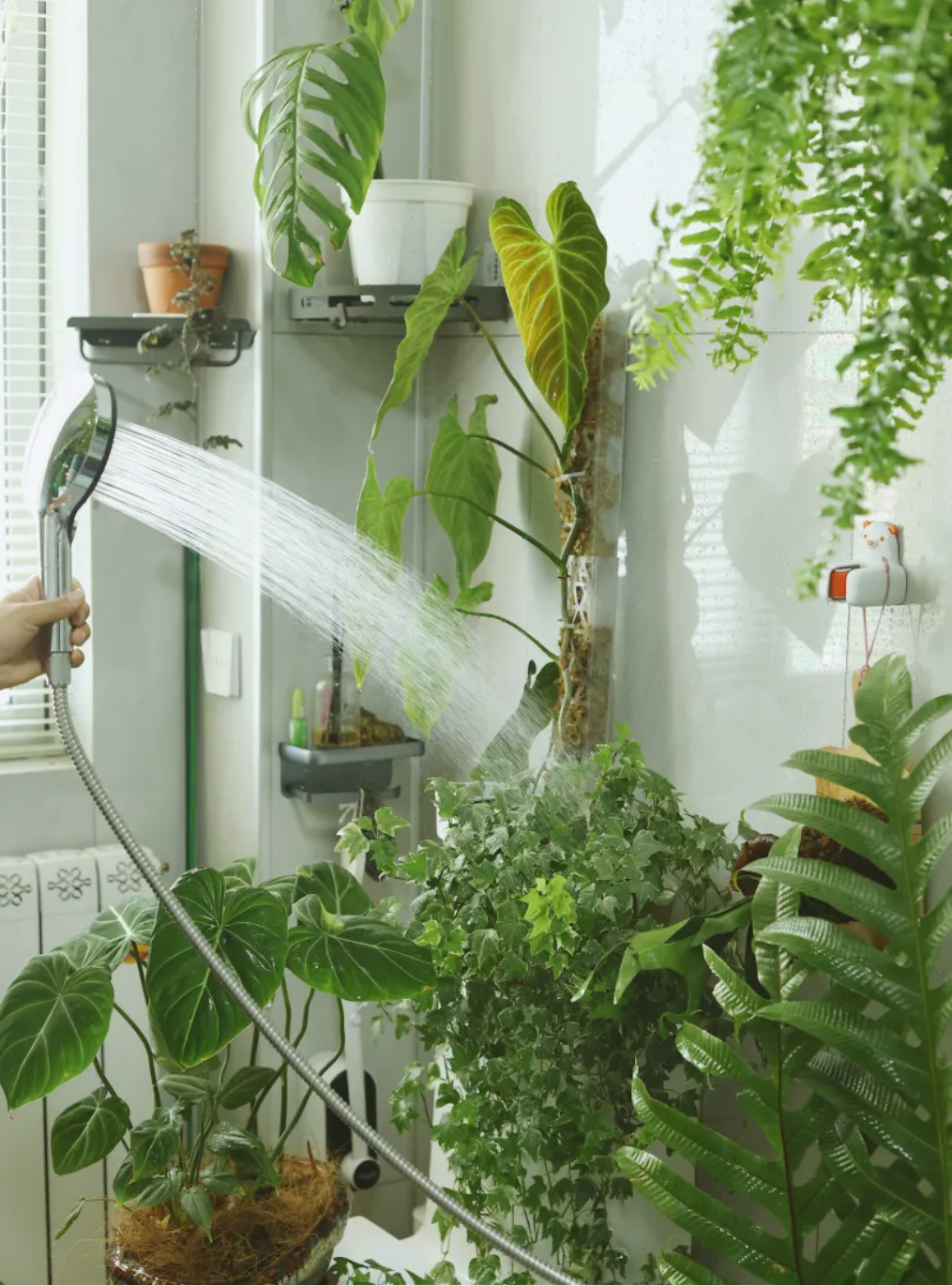 如果空間較為擁擠,可以垂掛、或小型的植物為主。