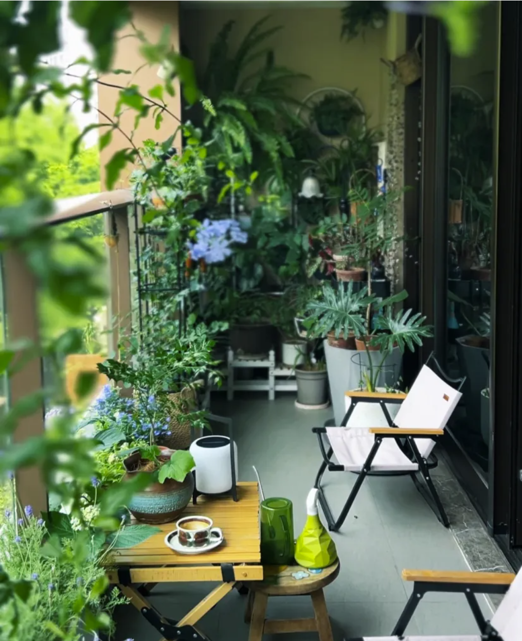 陽光充足的陽臺,植物的挑選上可以更大膽,讓枝繁葉茂的綠植隨意生長~